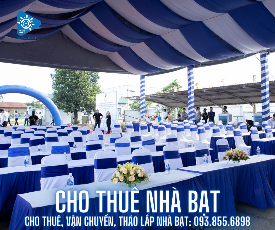 Công ty chúng tôi D&T chuyên cho thuê nhà bạt giá rẻ - với nhiều năm kinh nghiệm trong nghề luôn đặt uy tín và chất lượng sản phẩm lên hàng đầu sẽ giúp quý khách luôn yên tâm có được một sự kiện hoành tráng, thành công và đầy tính chuyên nghiệp. Hãy gọi ngay HOTLINE: 093.855.6898
